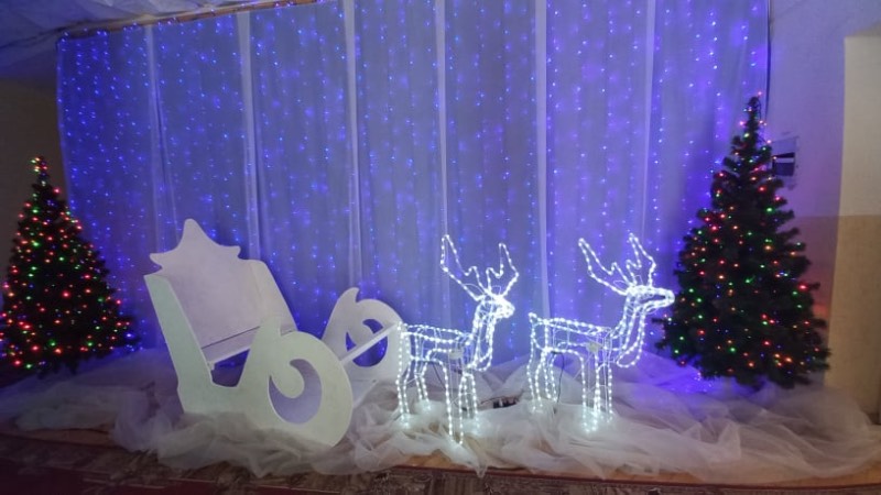 • Реквізит у вигляді Санта-Клауса, оленів, новорічних шапочок.
