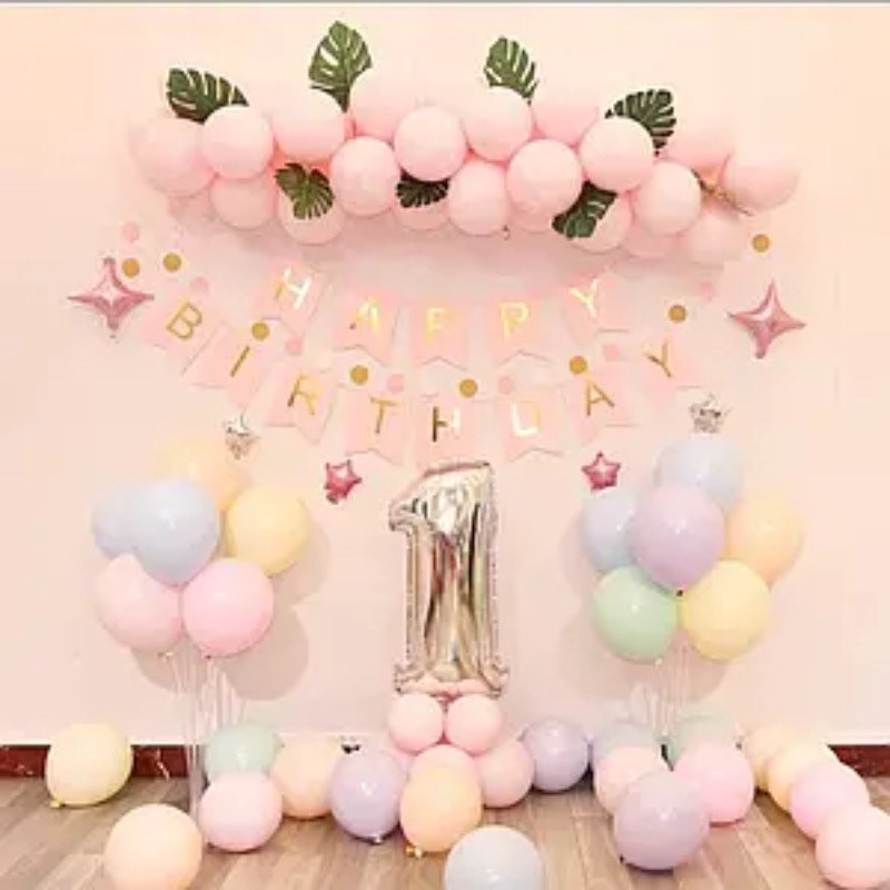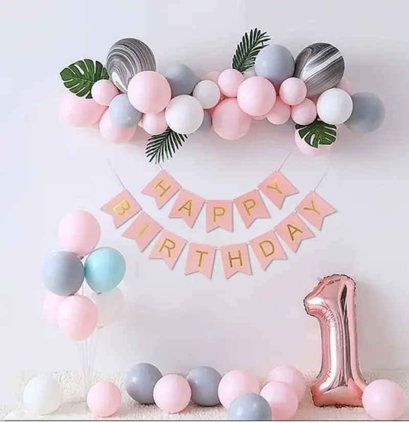 Перший день народження – особливе свято, тому фотозона має бути ніжною і радісною. Часто вибирають пастельні відтінки, кульки у вигляді цифри «1», банери з написами «Мій перший день народження». Можна додати м’які іграшки і гірлянди з маленьких прапорців.