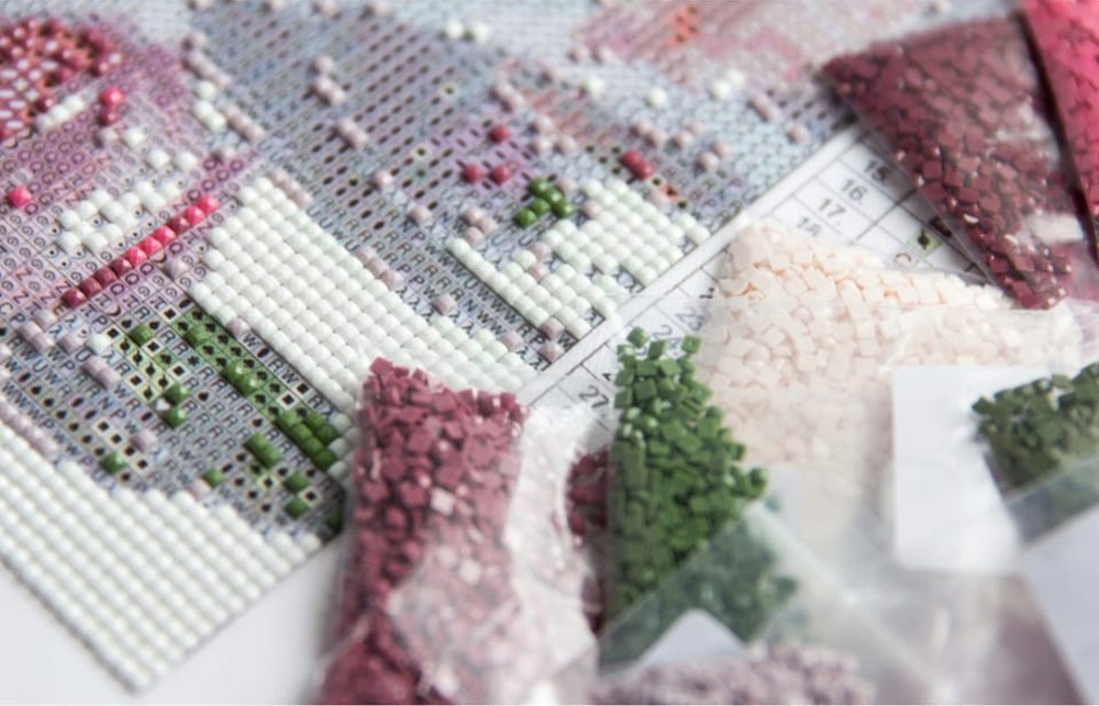 Наборы для алмазной вышивки бывают с полной или частичной выкладкой. В полной выкладывается вся поверхность полотна, в частичной — только часть изображения (например, цветы, животные или фигура на фоне). Начинать стоит с частичной выкладки — так проще привыкнуть к процессу и не перегореть на первых этапах. Когда появится уверенность, можно переходить к полным выкладкам и более сложным сюжетам.
