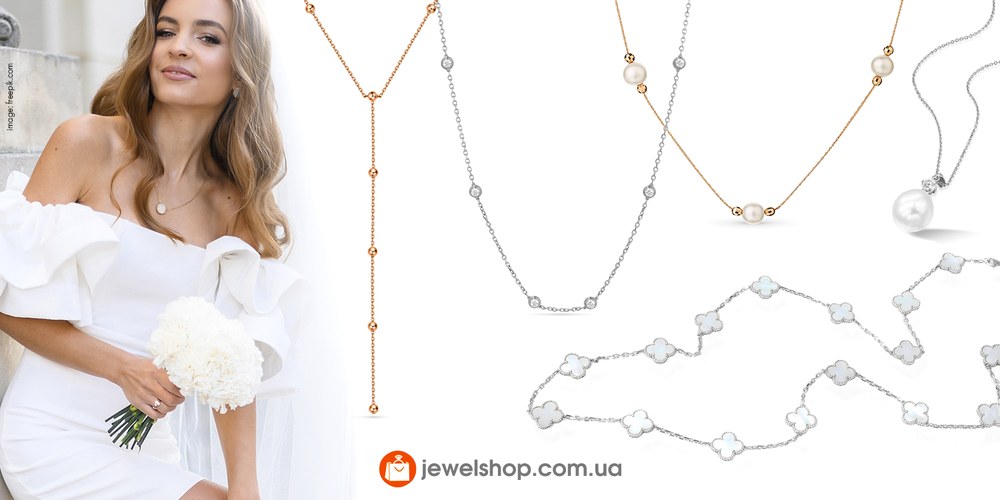 Розкішний аксесуар здатен стати центральною прикрасою та ненав’язливо підкреслити красу шиї й зони декольте. Такі ювелірні вироби на весілля додають елегантності, завершеності та особливої шляхетності.