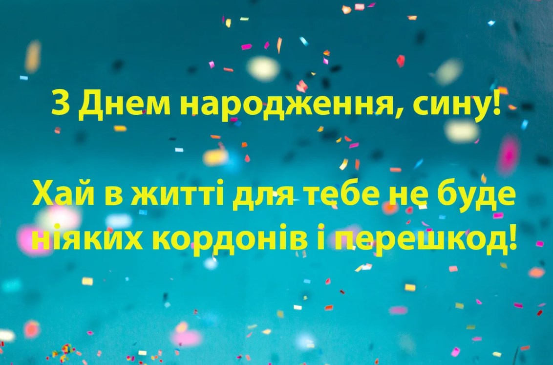 • Синку, вітаю тебе з днем народження! Нехай доля веде тебе до світлих вершин, а кожен день приносить радість. Будь здоровим, щасливим і впевненим у своїх силах.