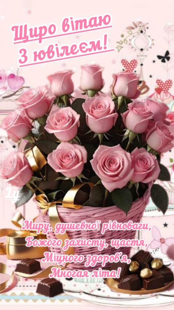 З ювілеєм тебе – красивим, впевненим і мудрим етапом життя. Бажаємо, щоб у тебе завжди було заради чого посміхатись і для кого світитися. Нехай життя тішить, а турботи обходять стороною. Щастя – поруч, потрібно лише простягти руку.