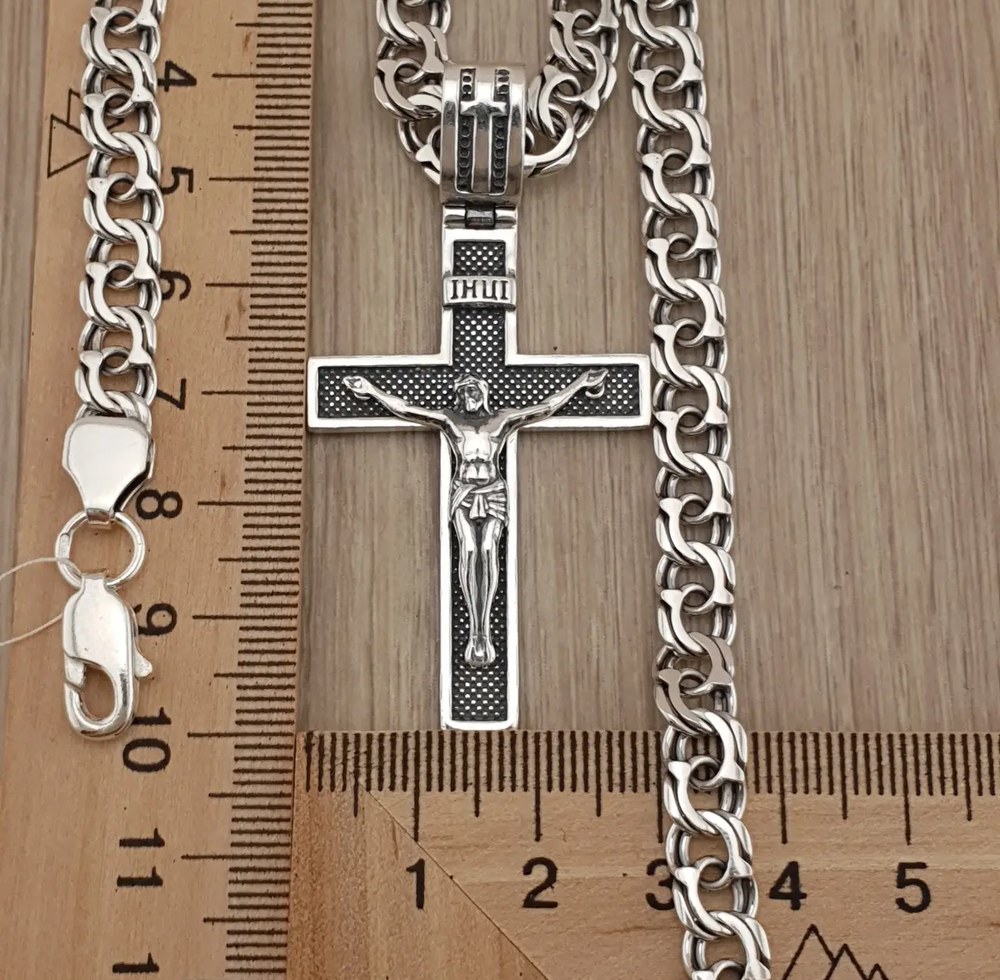 Срібні цепочки бісмарк с хрестиком / кулоном товсті можуть стати чудовим подарунком для близької людини. Кулон може бути обраний в залежності від особистих уподобань: