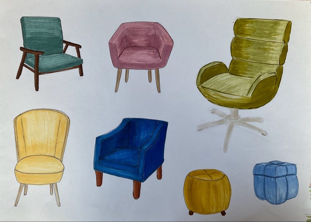 Малюючи крісла в різних стилях, людина вчиться бачити більше, ніж просто меблі. Вчиться читати форму, настрій, призначення. І, чесно кажучи, це затягує. Один ескіз – і хочеться ще.