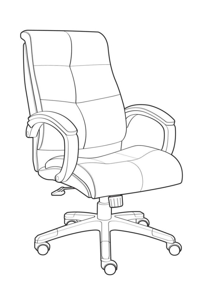 Комп’ютерне крісло – більш технічне. Тут важлива конструкція: хрестовина з колесами, газліфт, вигнута спинка. Почніть із осі симетрії, щоб крісло не “завалилося”. Потім додайте деталі: підлокітники, шви, вентиляційні отвори. Таке крісло краще малювати чіткими, впевненими лініями.
