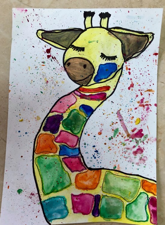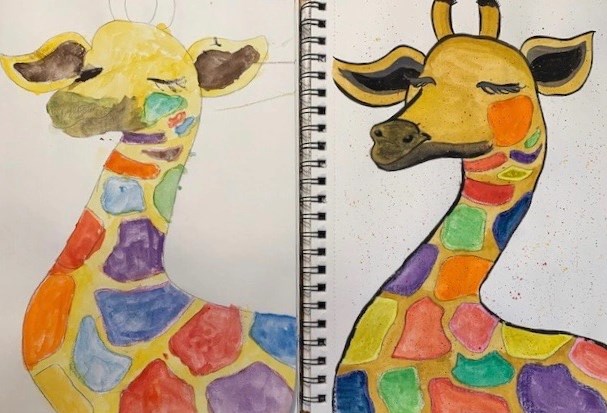 Не намагайся зробити малюнок ідеальним — жираф гарно виглядає в різних варіантах: намальований фарбами, олівцями чи маркерами. Якщо малює дитина — підтримуйте, хваліть за старання і заохочуйте.