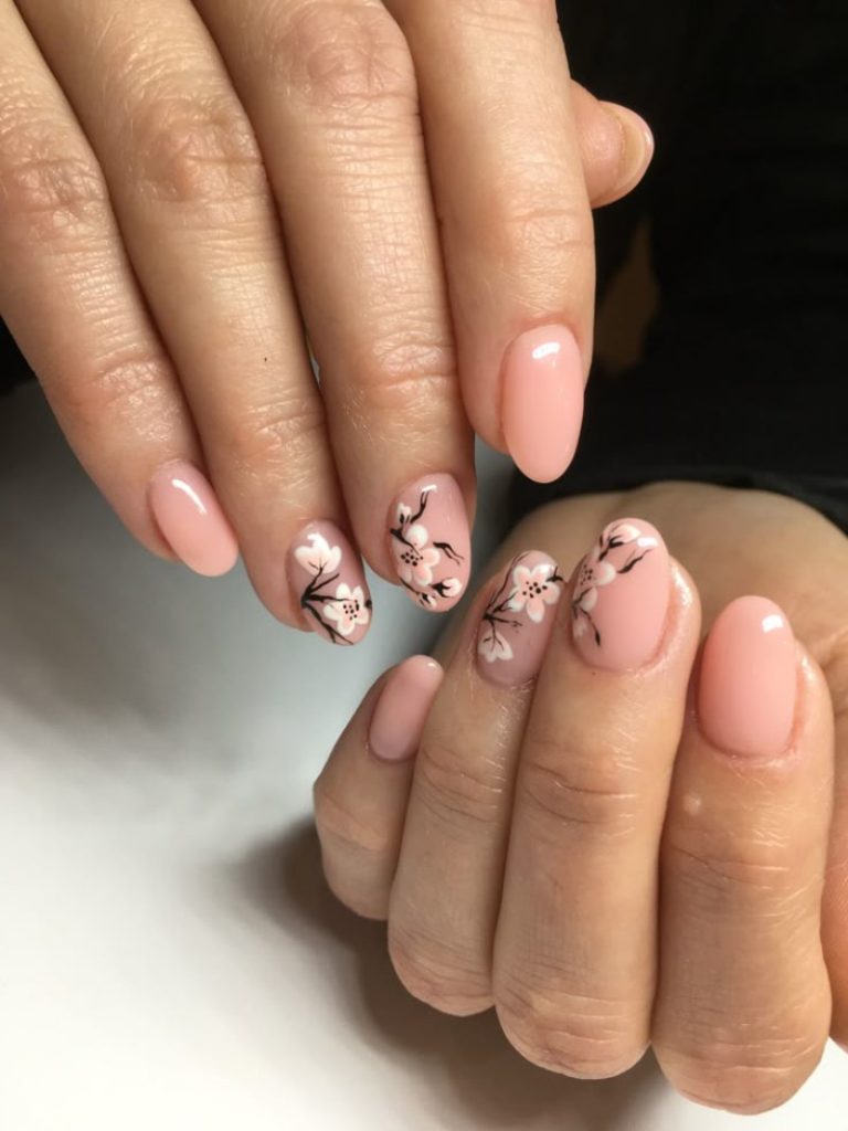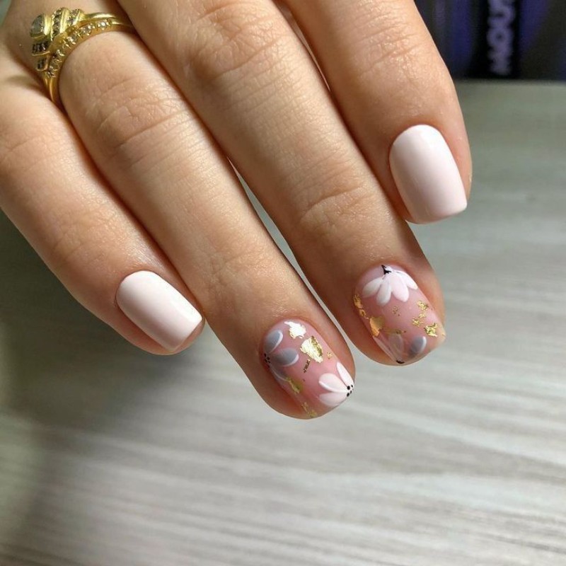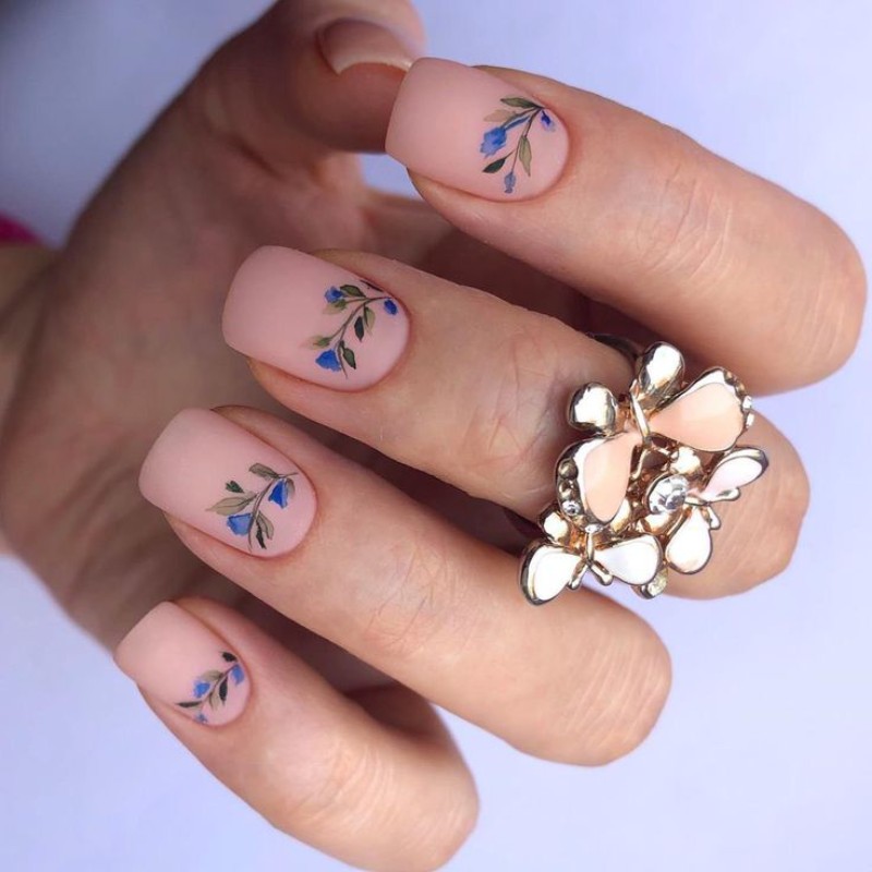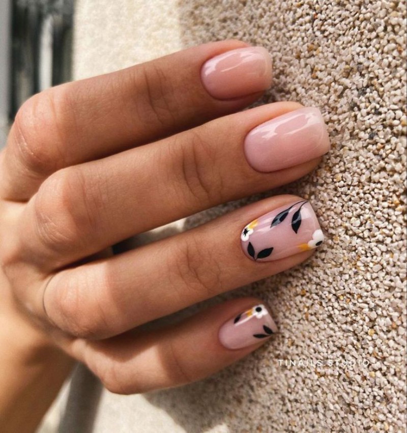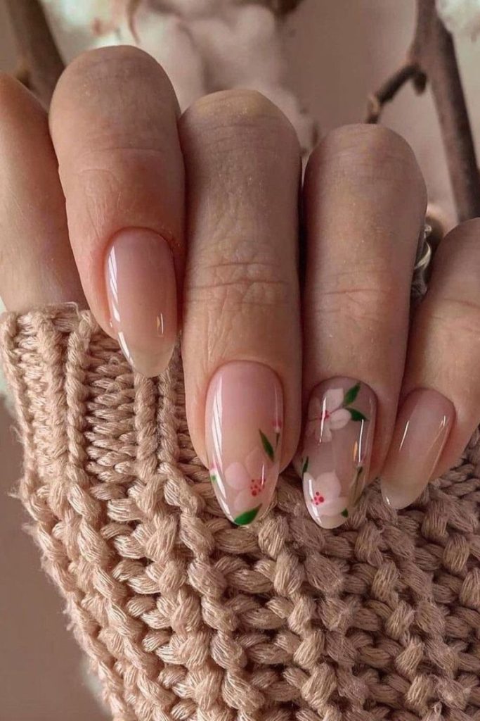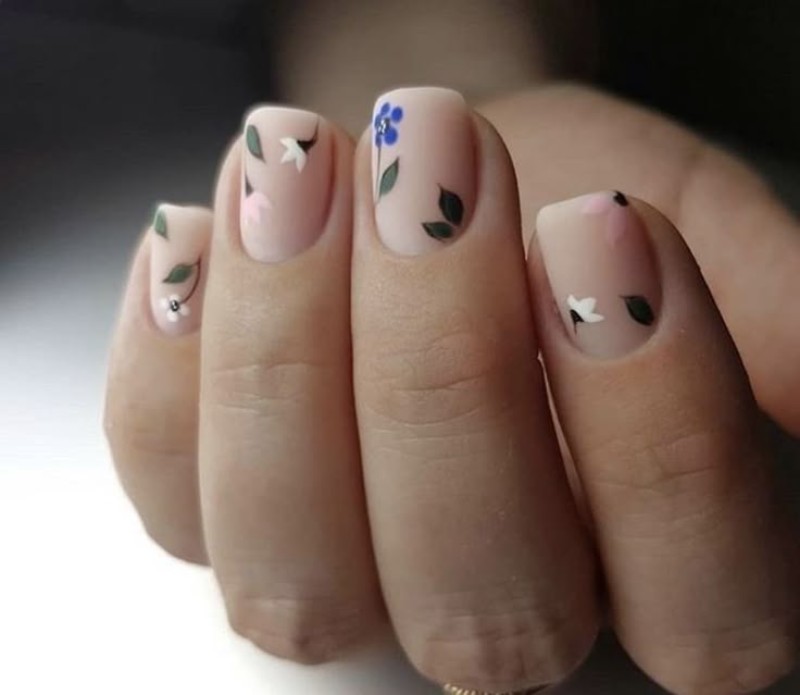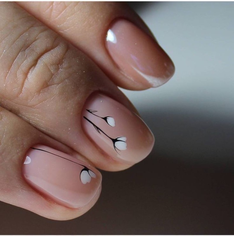 - Нюдовий манікюр із квітами.