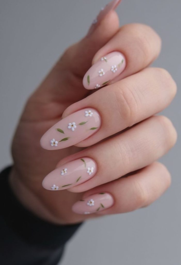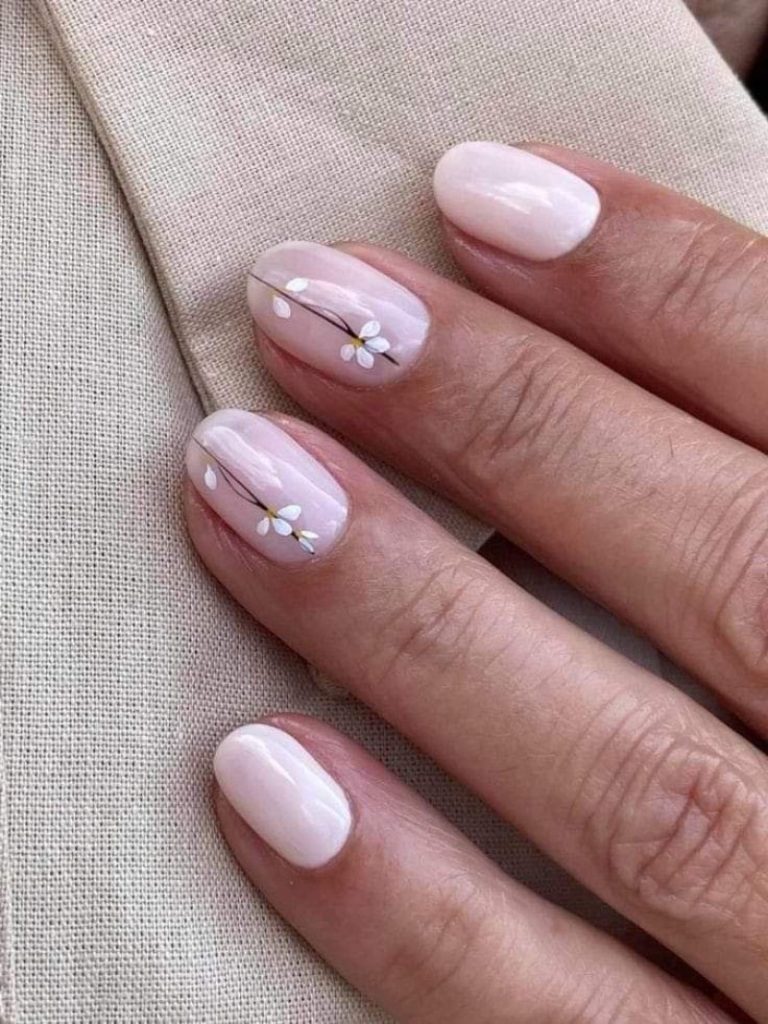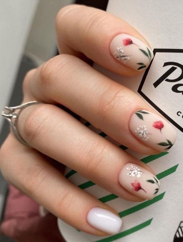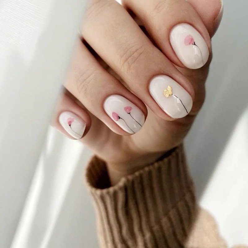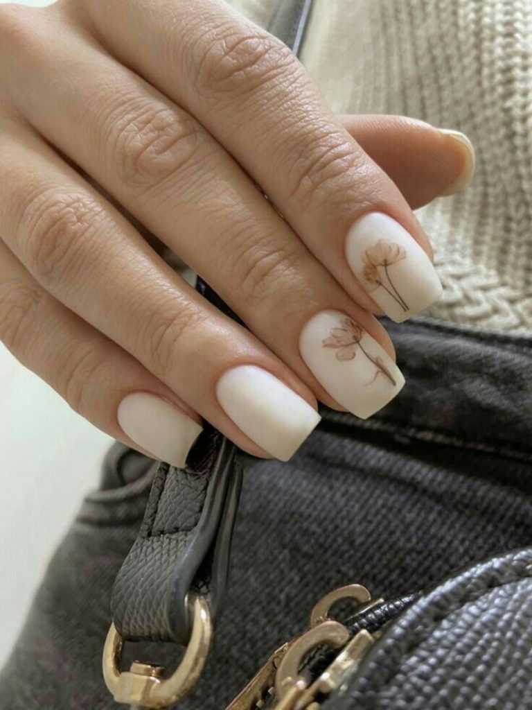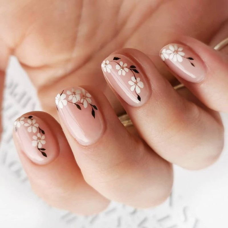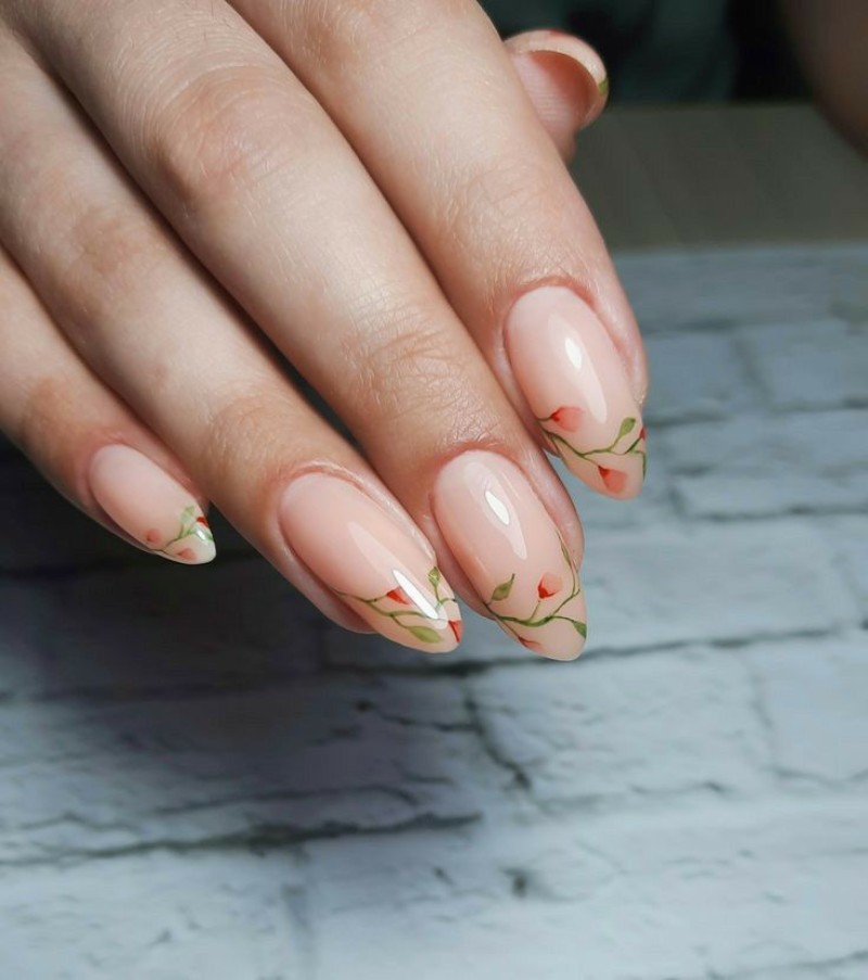- Нюдовий манікюр із квітами.