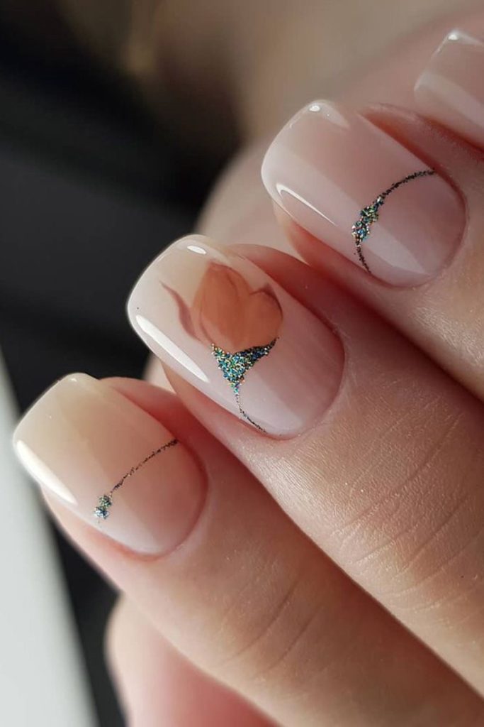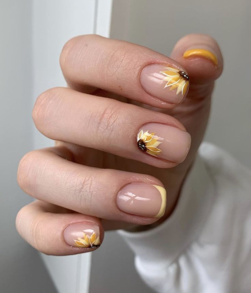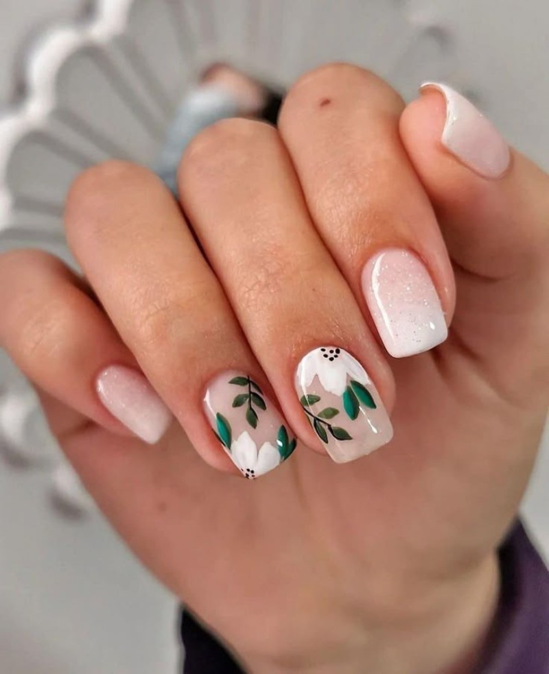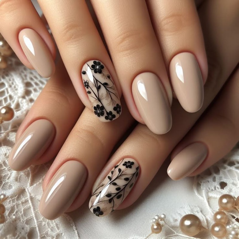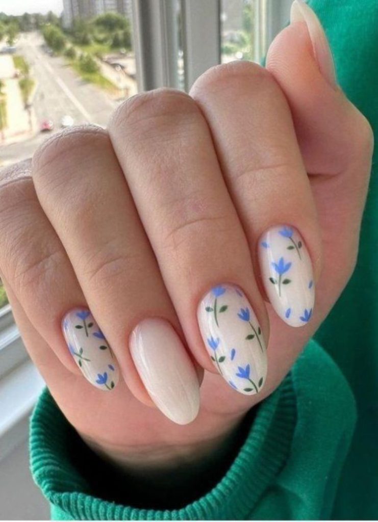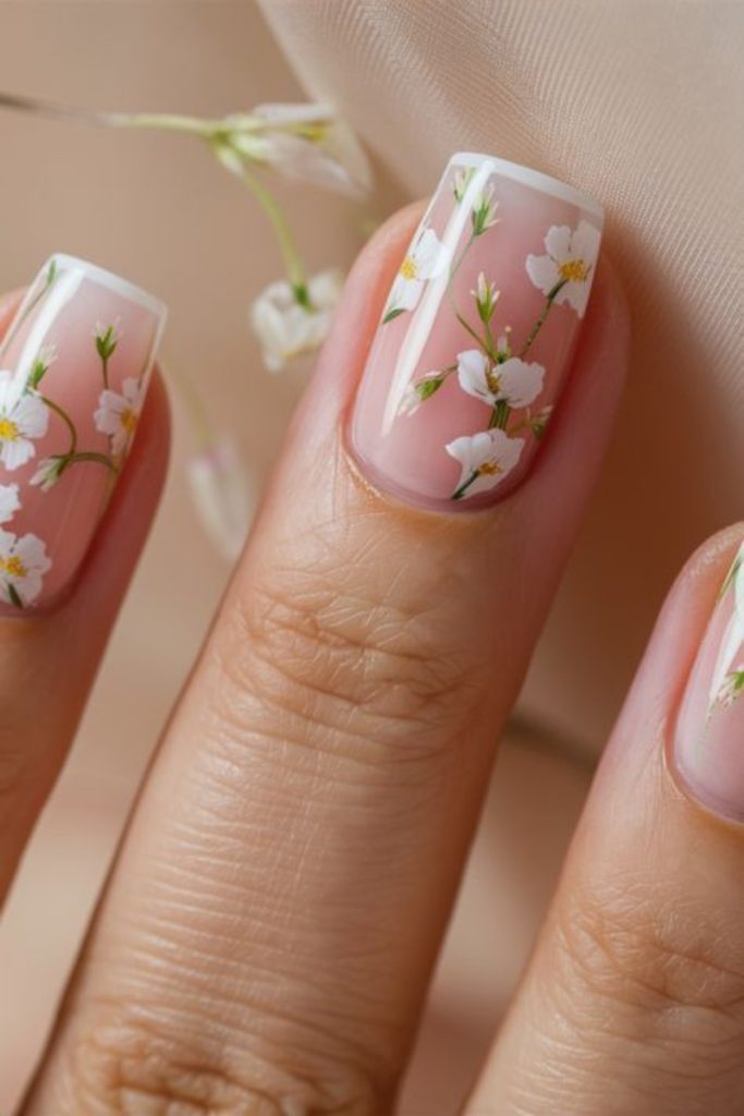 - Нюдовий манікюр із квітами.