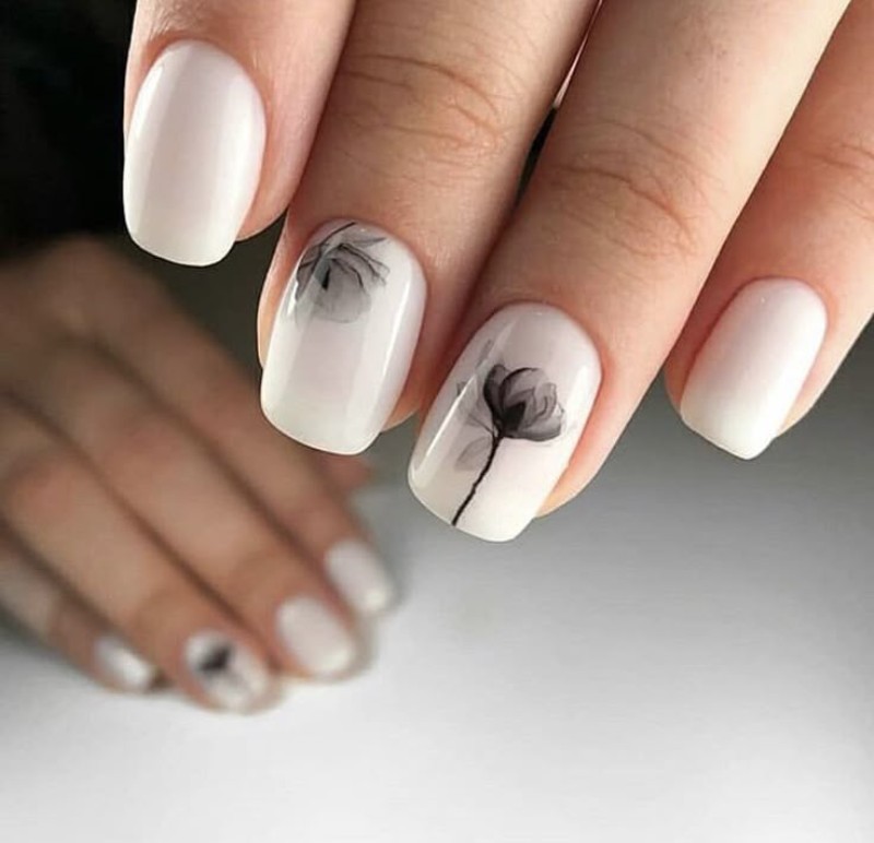 На коротких нігтях краще виглядає манікюр з квітами на короткі нігті у вигляді дрібного акценту або монохромного декору.