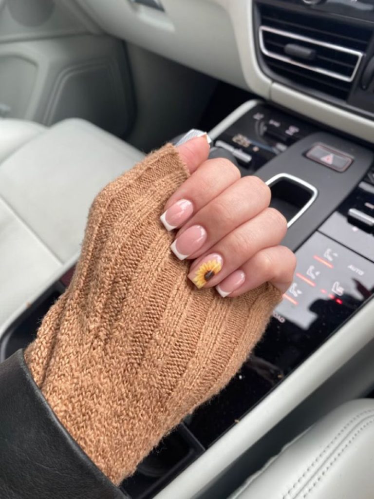 Офісний look добре поєднується з нюдовим манікюром із квітами, а святковий – з варіантами в стилі французький манікюр з квітковим оформленням.
