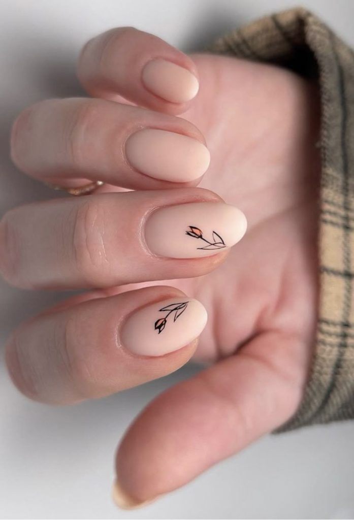 Найчастіше вибирають нюдову основу з мінімалістичними квітами. - Чи залишаються квіти в дизайні нігтів актуальними восени?